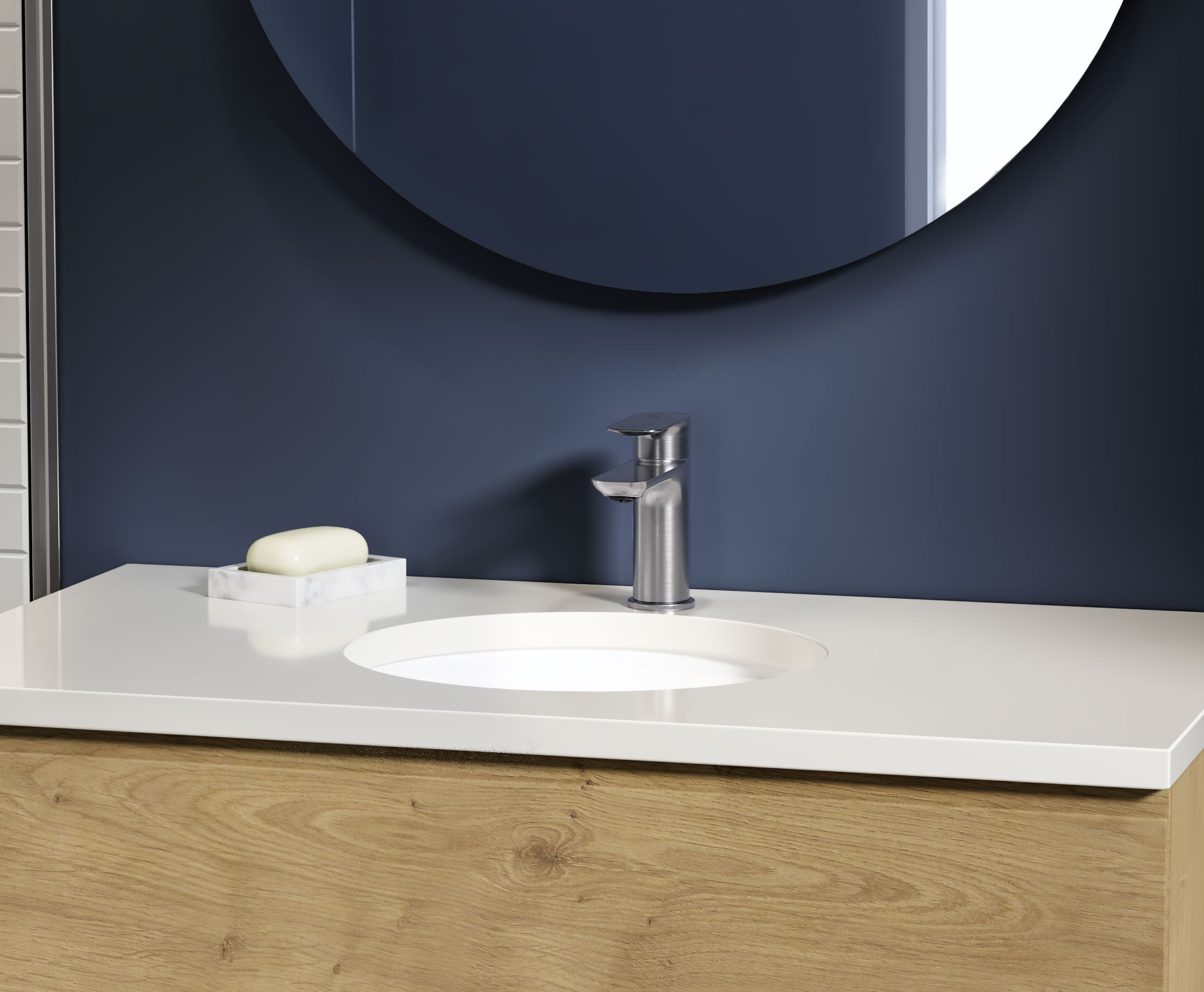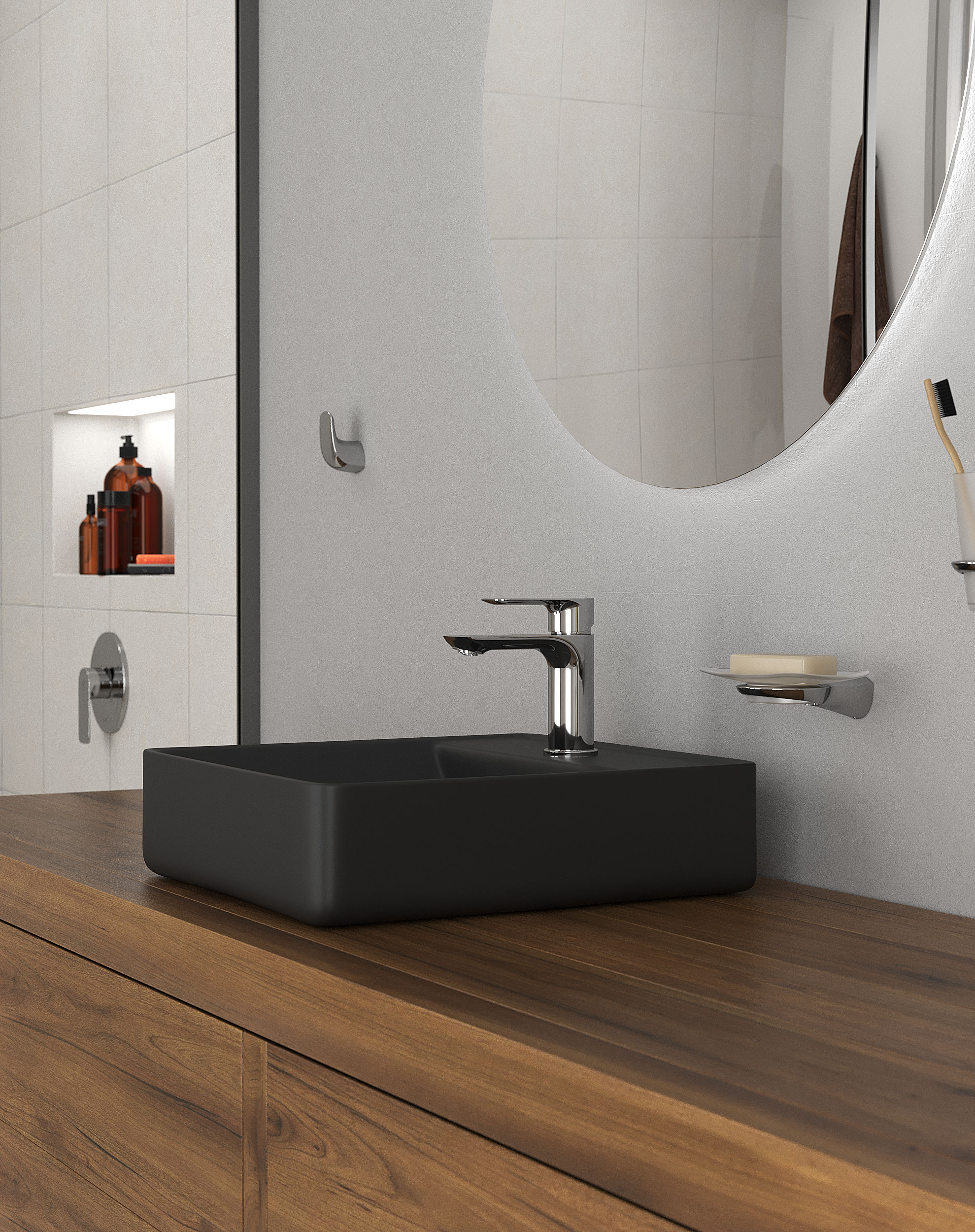 Built-in single handle lavatory set.